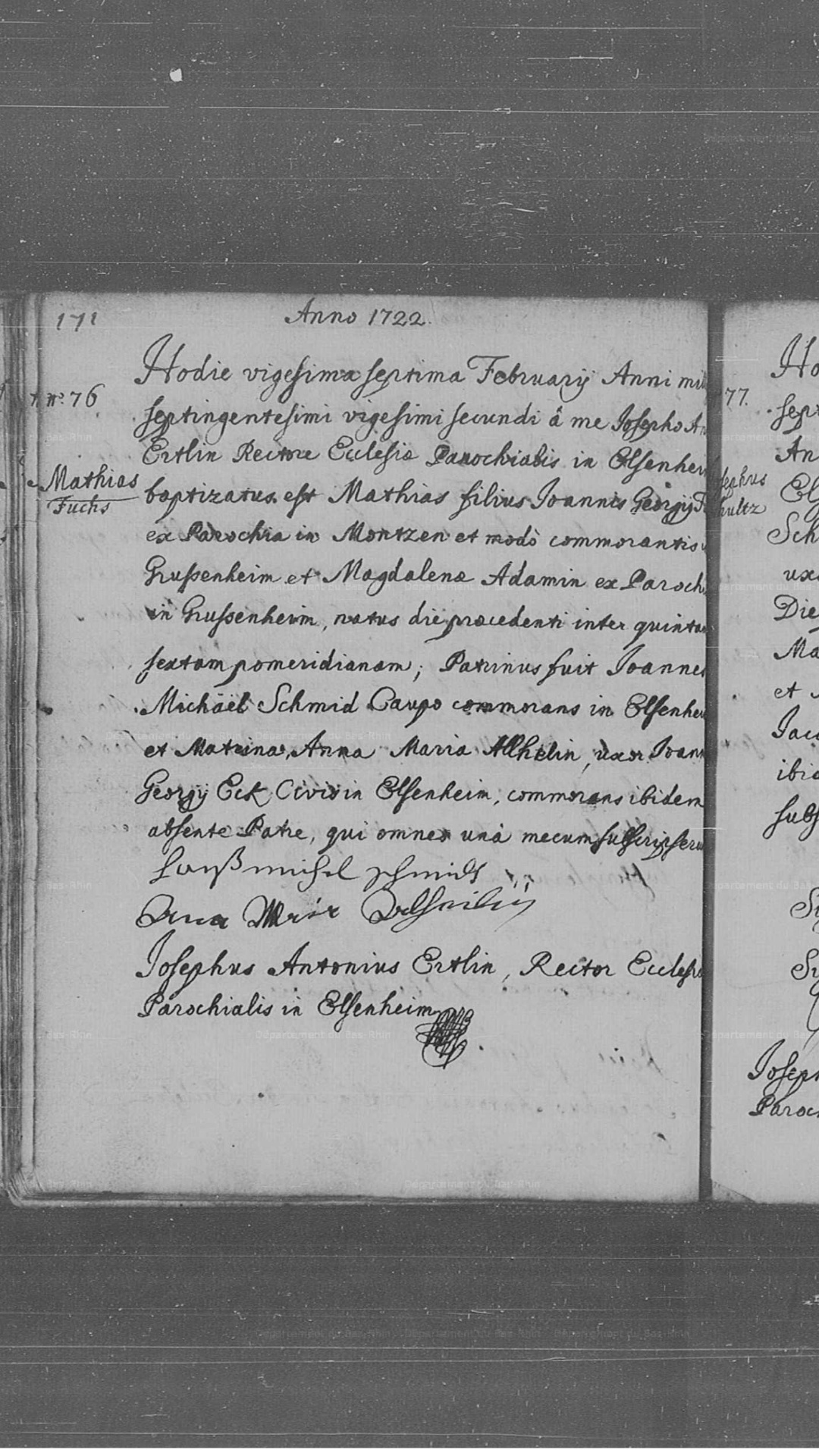 Elsenheim - Paroisse catholique (Avant 1793) - Registre de baptêmes 1687-1726 - 3 E 120/1