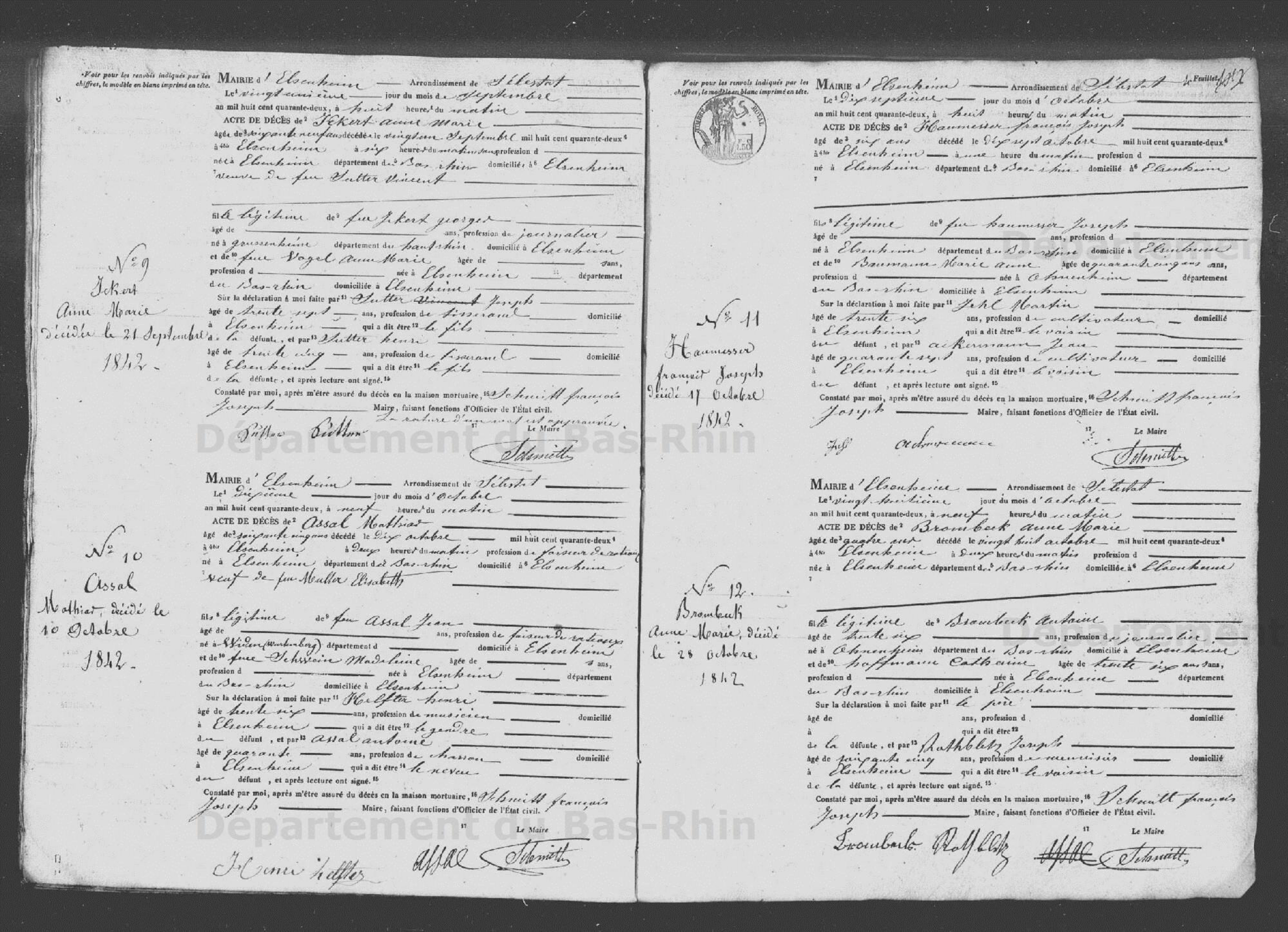 Elsenheim - Etat civil - Registre de décès 1842 - 4 E 120/9