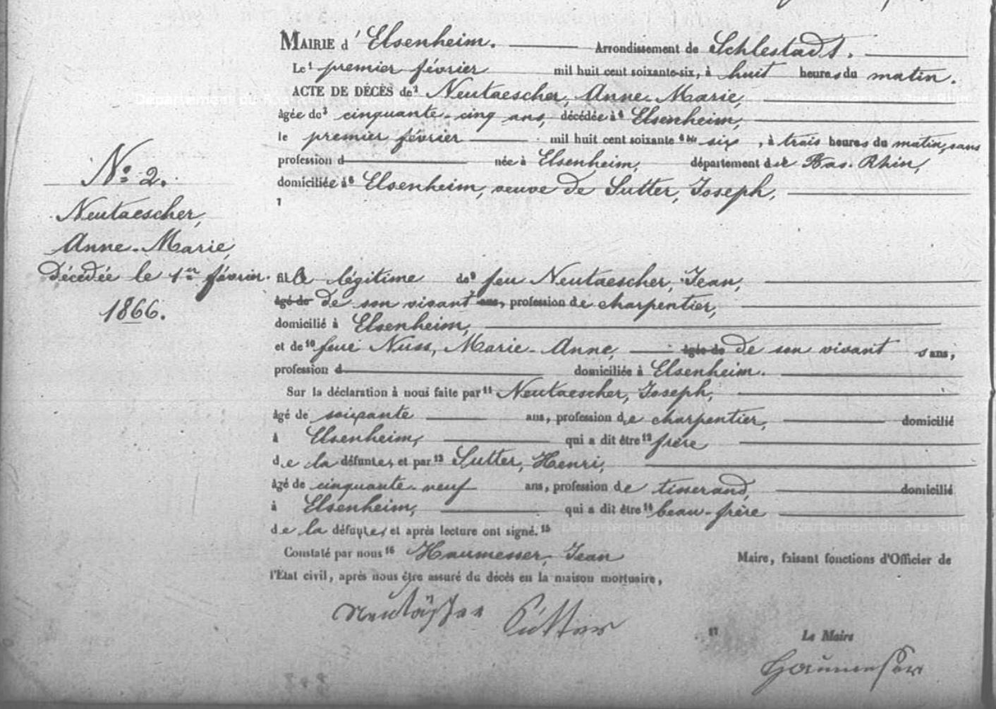 Elsenheim - Etat civil - Registre de décès 1866 - 4 E 120/10